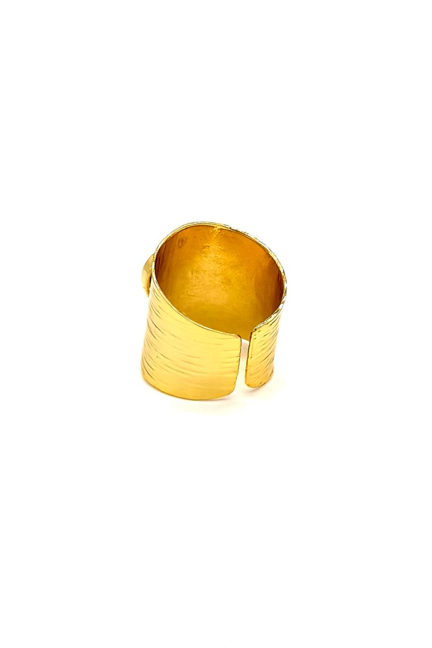 - Anillo en bronce con baño en oro de 24 kilates.