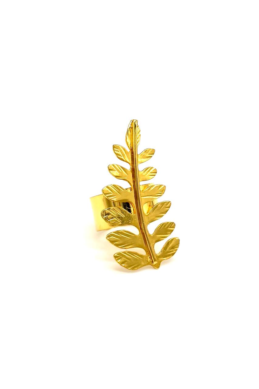 Anillo hoja Griega elaborada en bronce con baño en oro de 24 kilates. Hecho a mano. Joyería contemporánea. Ajustable.Precio: 150,000 COP