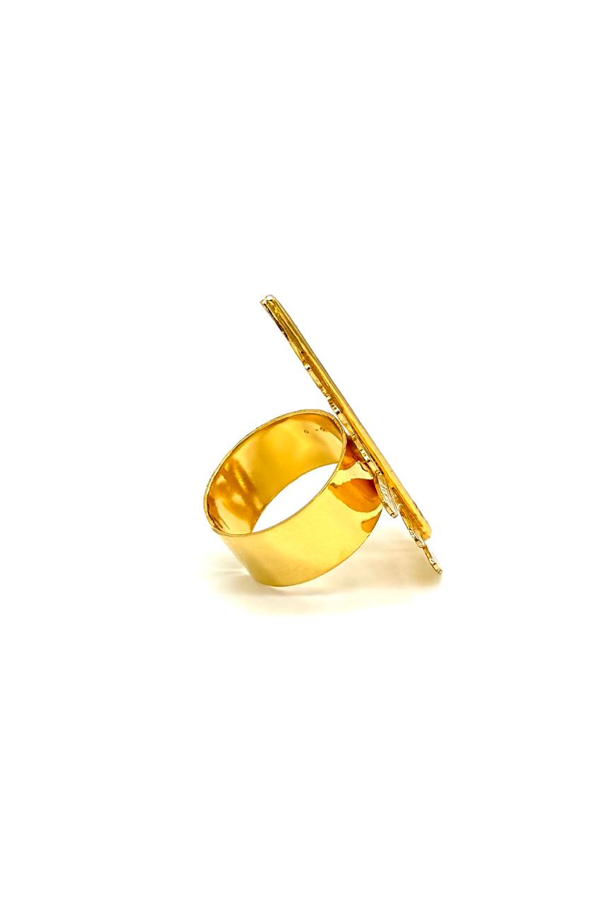 - Anillo en bronce con baño en oro de 24 kilates.
