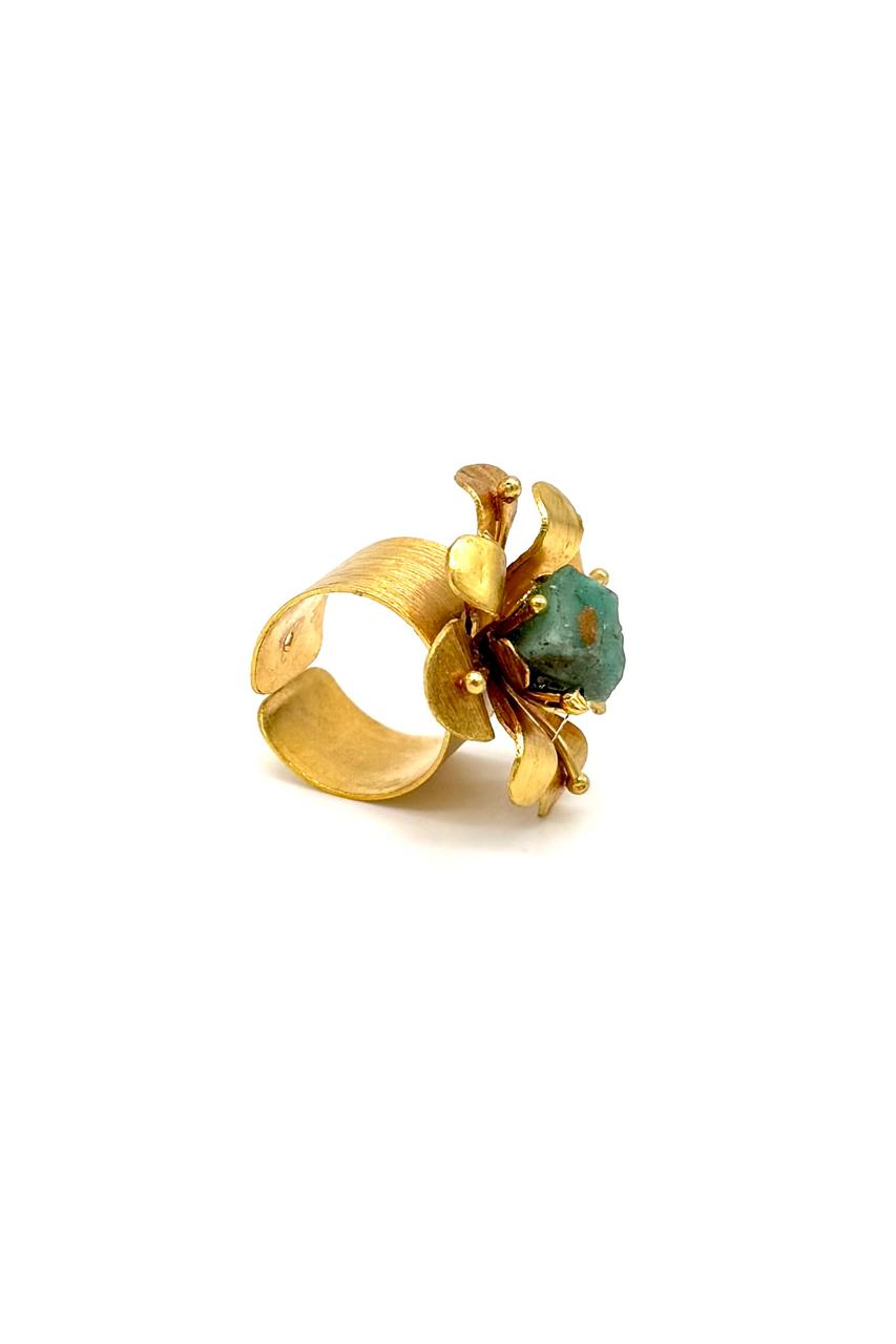 Anillo flor elaborado en bronce con baño en oro de 24 kilates, murralla esmeralda. Ajustable.Precio: 2,800,001 COP