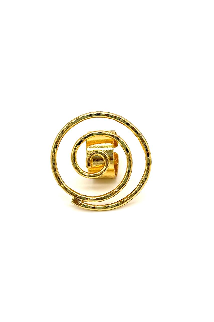 - Anillo elaborado en bronce con baño en oro de 24 kilates.