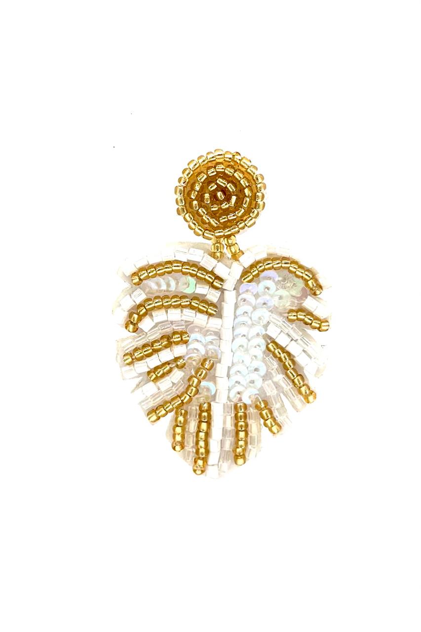 Aretes hoja elaborado en técnica de soutache, mostacillas Checas, lentejuelas boreales.Precio: 120,000 COP