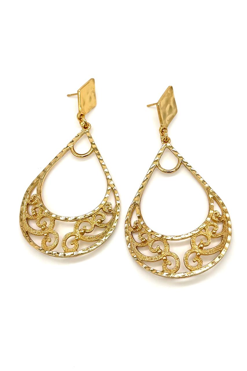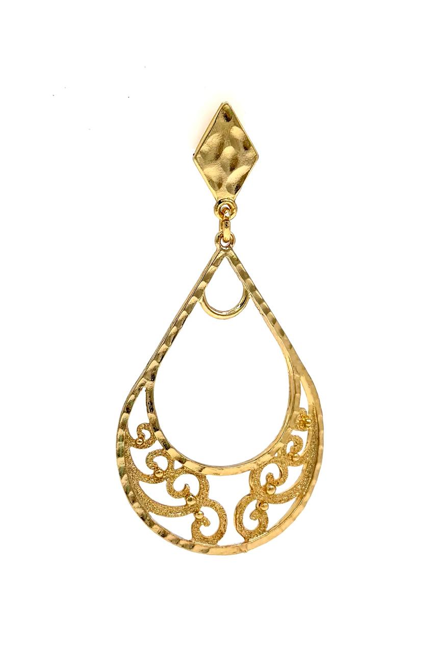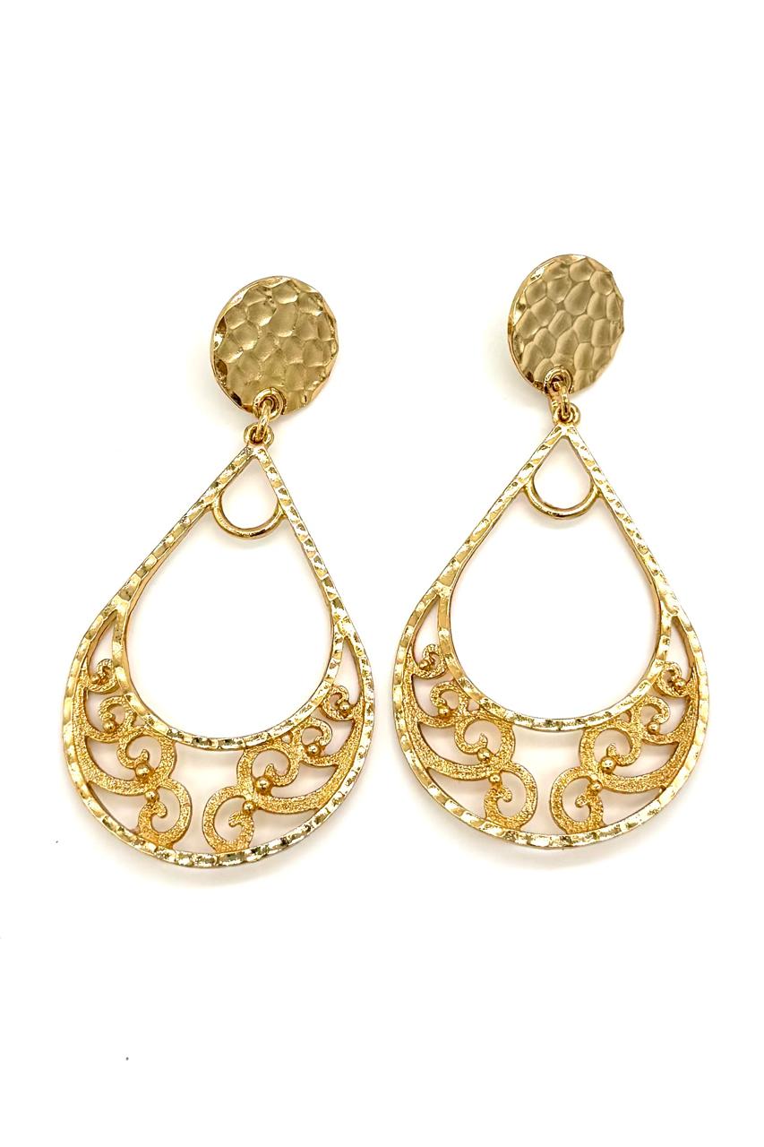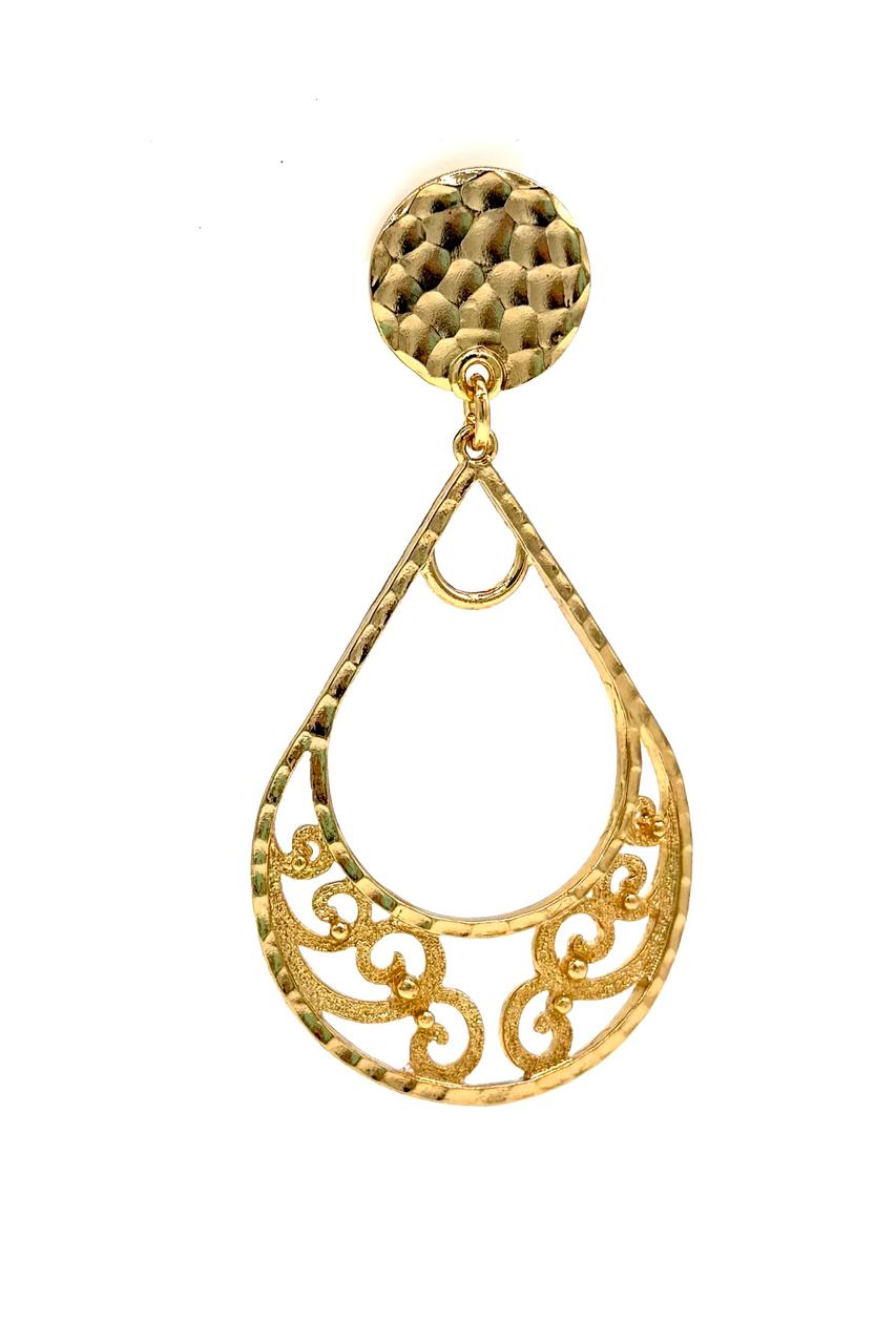 Aretes maxi elaborados en samac con baño en oro de 24 kiltes, matizados.Precio: 210,000 COP