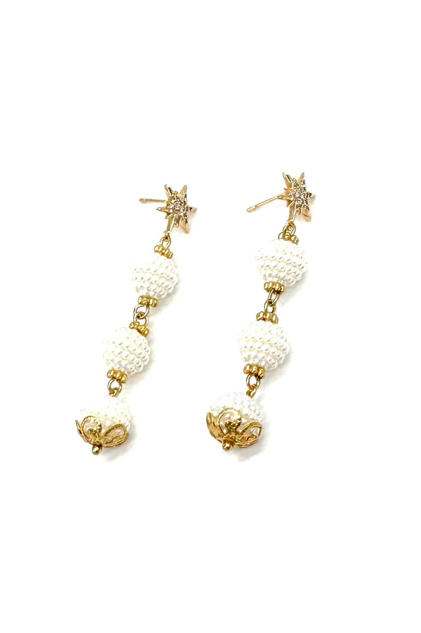 Aretes moritas elaborados con hilo goldfield micra oro, canastas en acero, separadores en goldfield y topo en rodio con micro zircón.Precio: 110,000 COP