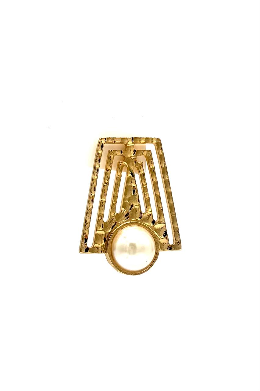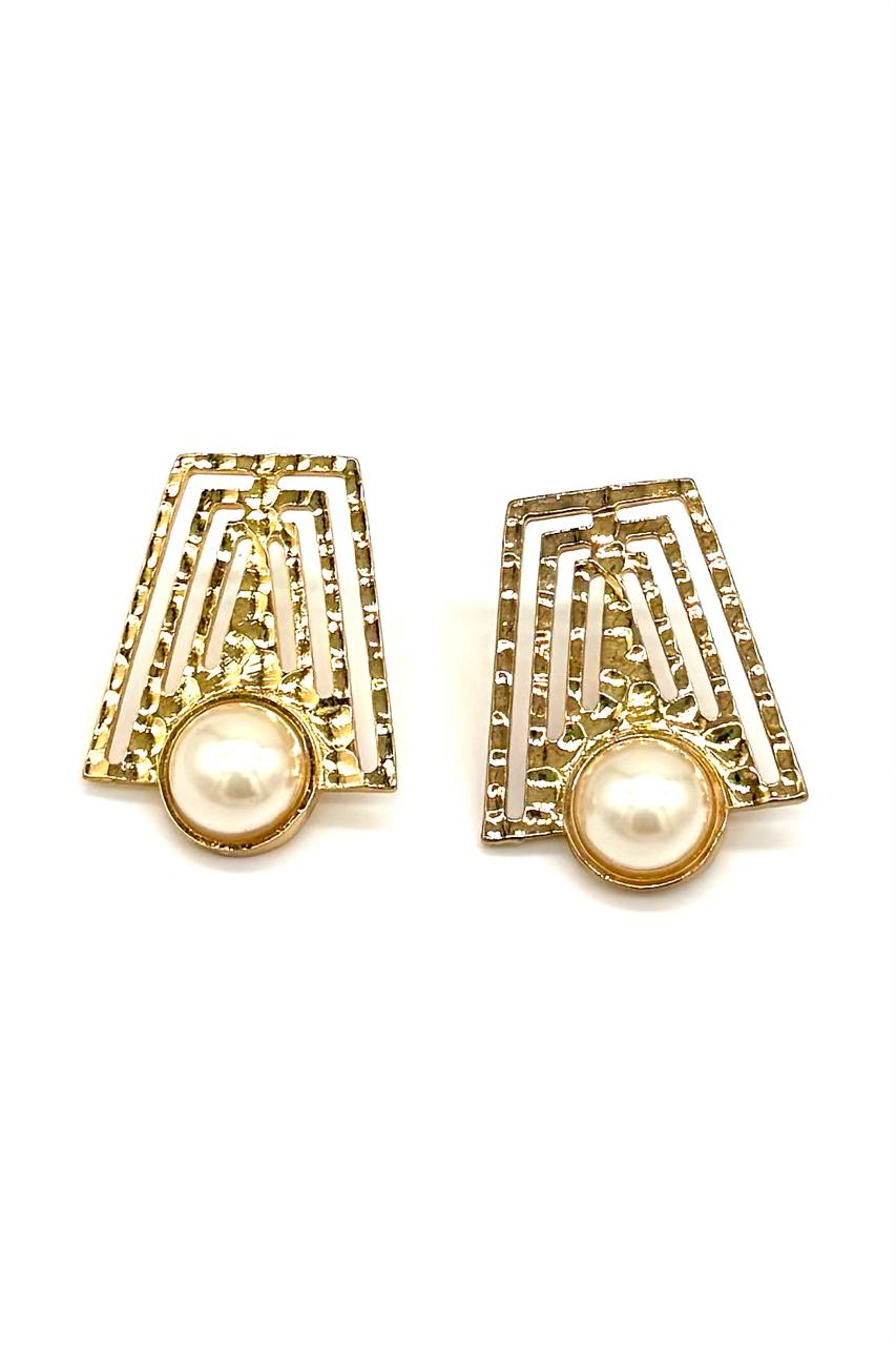 Aretes laberinto elaborados en samac baño en oro de 24 kilates, perla sintética.Precio: 130,000 COP