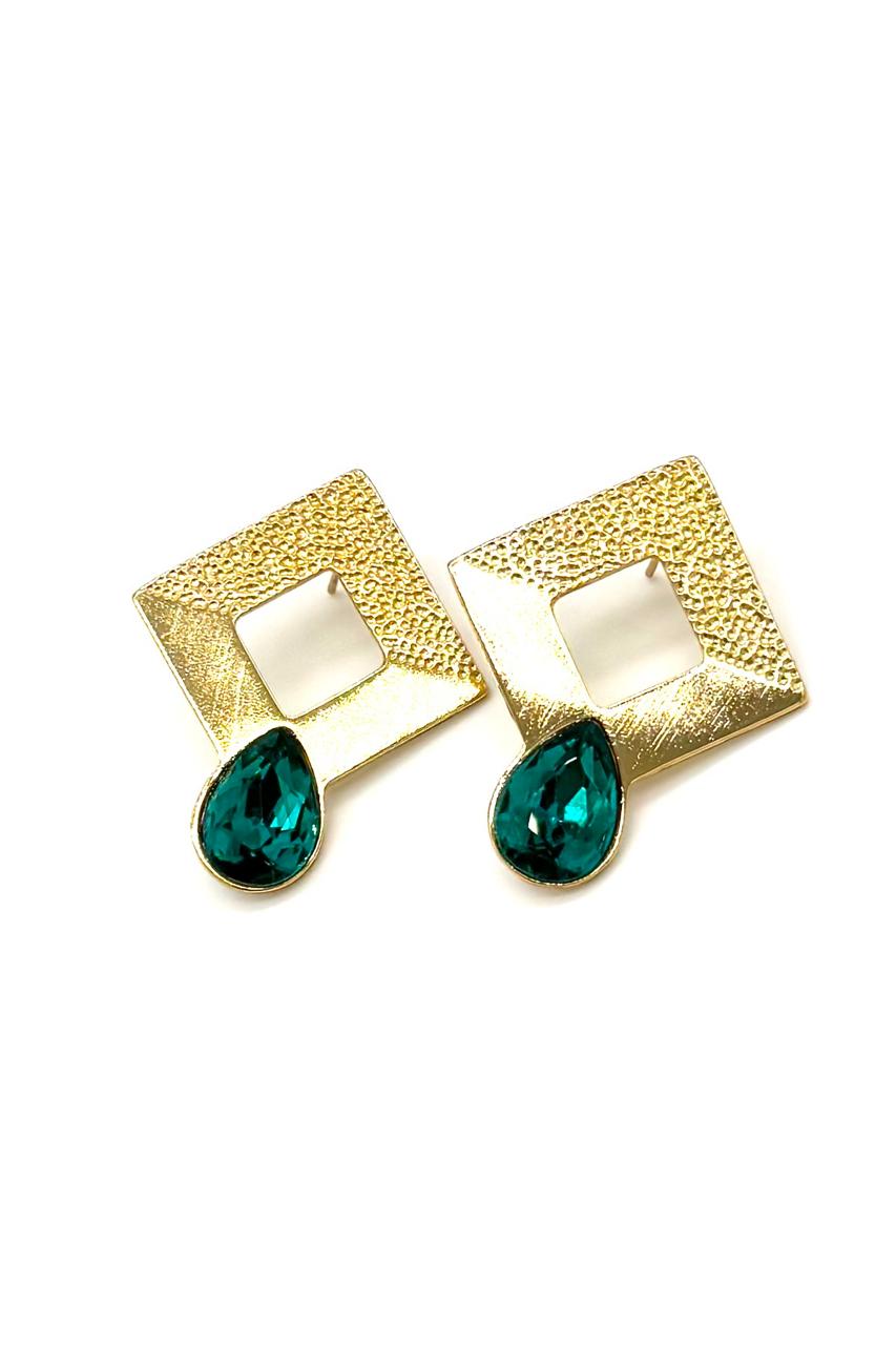 Aretes rombo elaborados en samac baño en oro de 24 kilates, cristales Checos.Precio: 120,000 COP