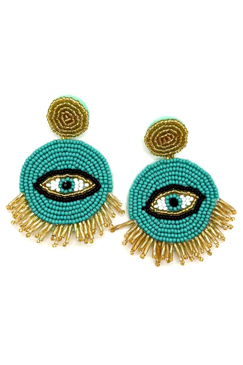 Aretes ojo Turco elaborados en técnica de soutache, con mostacillas Checas. Hecho a mano.Precio: 150,000 COP
