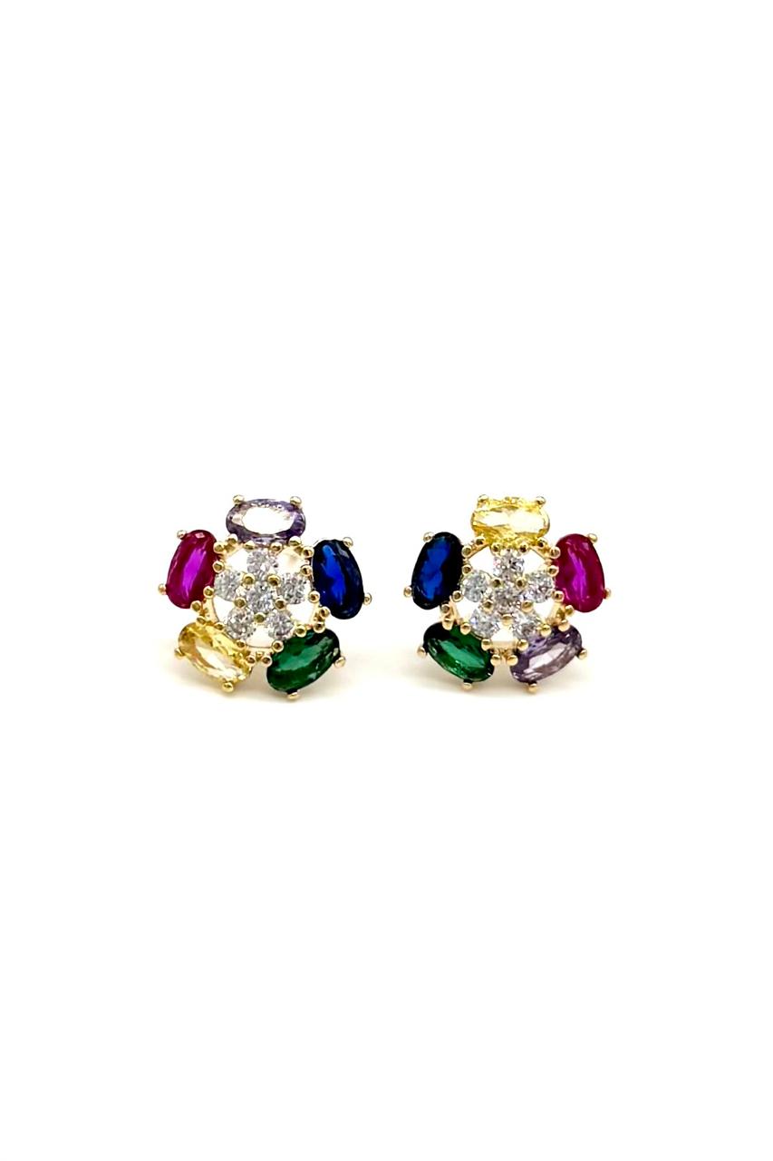 ARETES TOPO MULTICOLOR ORO LAMINADO 18K