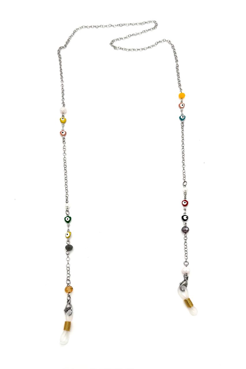 Cadena para lentes elaborada en acero, ojo turco en acero, cristales Checos, gomas en silicona.Precio: 130,000 COP