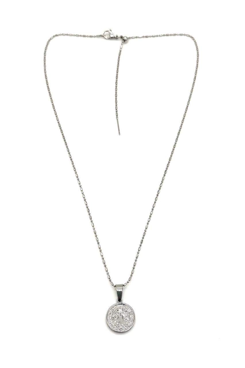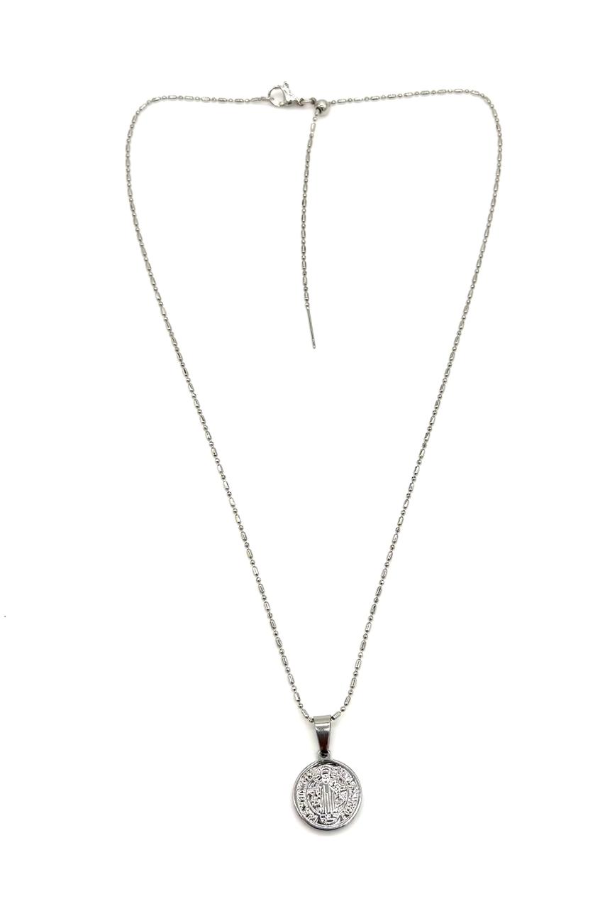 Cadena San Benito elaborada en rodio, medalla en acero. Ajustable.Precio: 70,000 COP