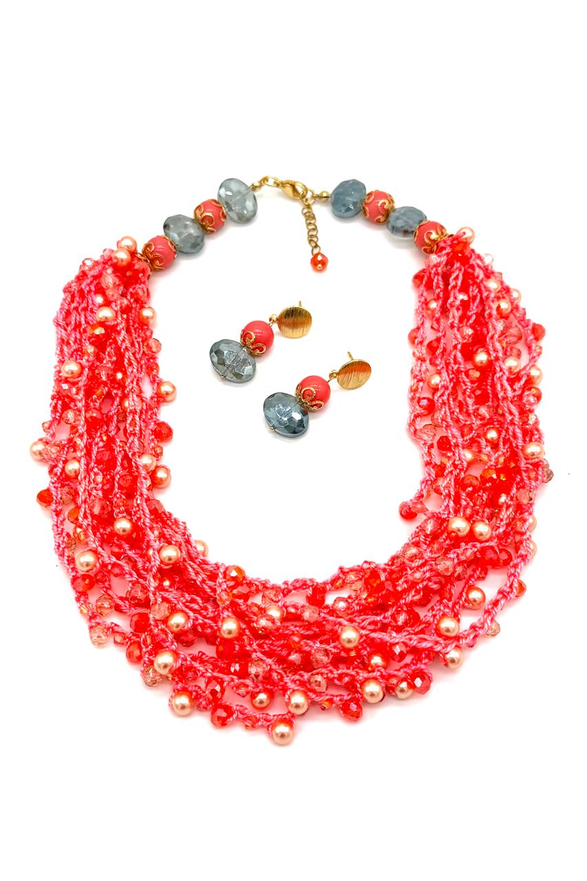 Collar tejido en técnica de Crochet, perlas cristal, cristal Checo, sintética, topo en bronce con baño en oro de 24 kilates, cristales ovalados boreal, terlencaPrecio: 300,000 COP