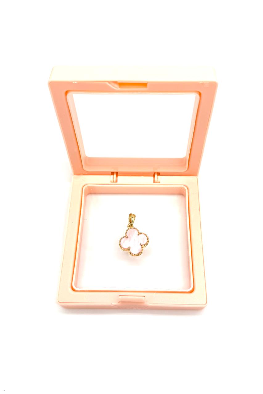 Dije trébol rosado elaborado en oro laminado de 18 quilates, nacarado. Garantía 1 año.Precio: 190,000 COP