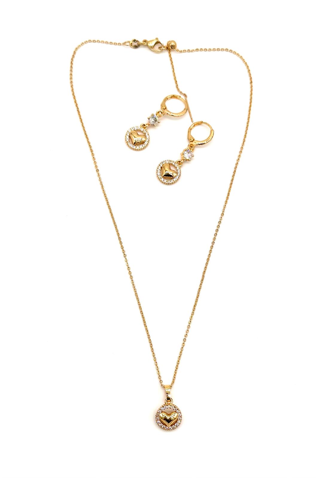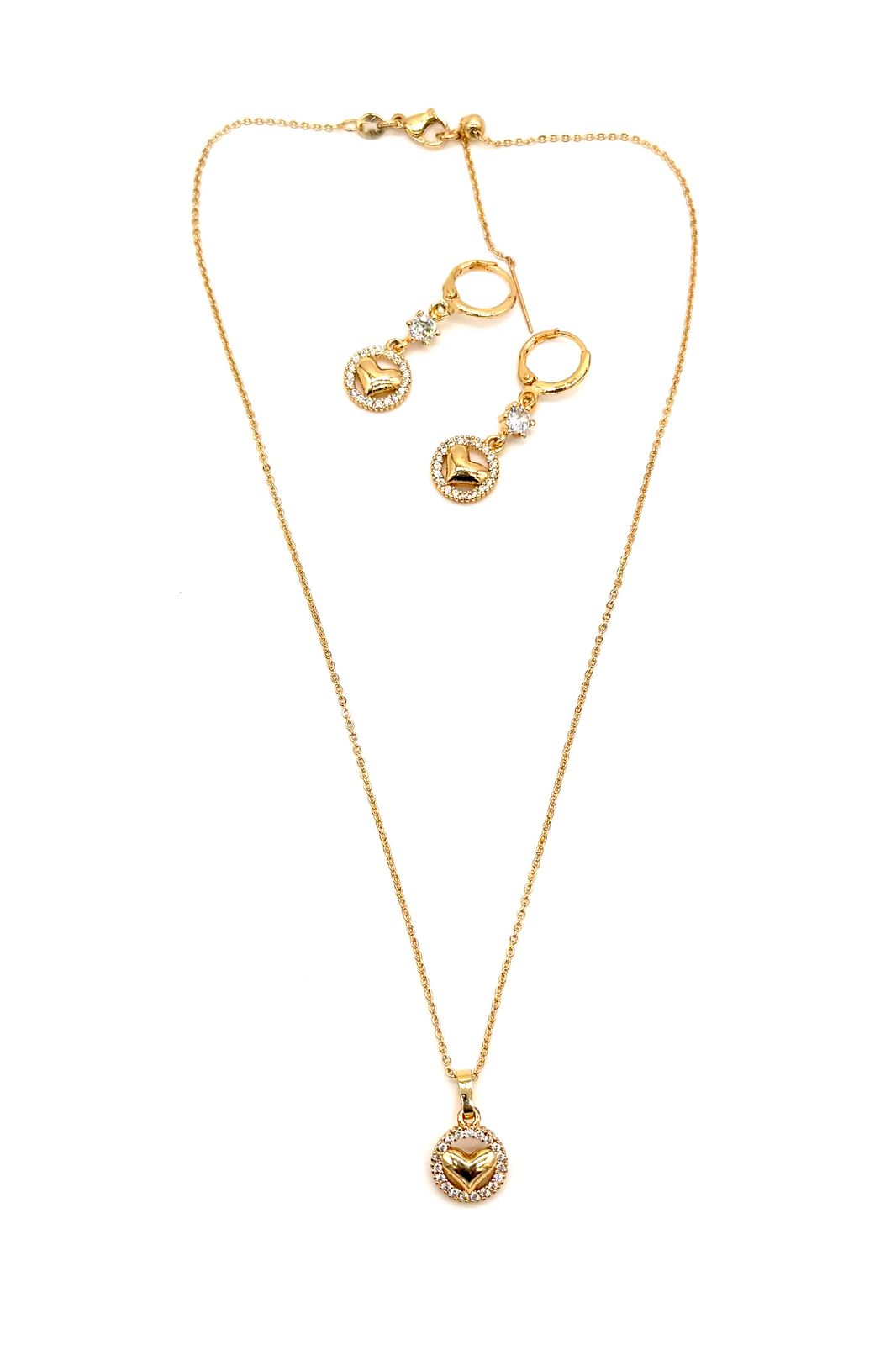 Juego corazón elaborado en rodio con micro zircón. Ajustable.Precio: 120,000 COP