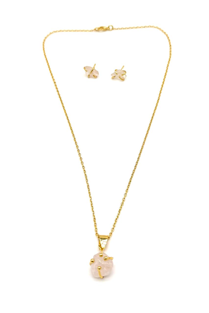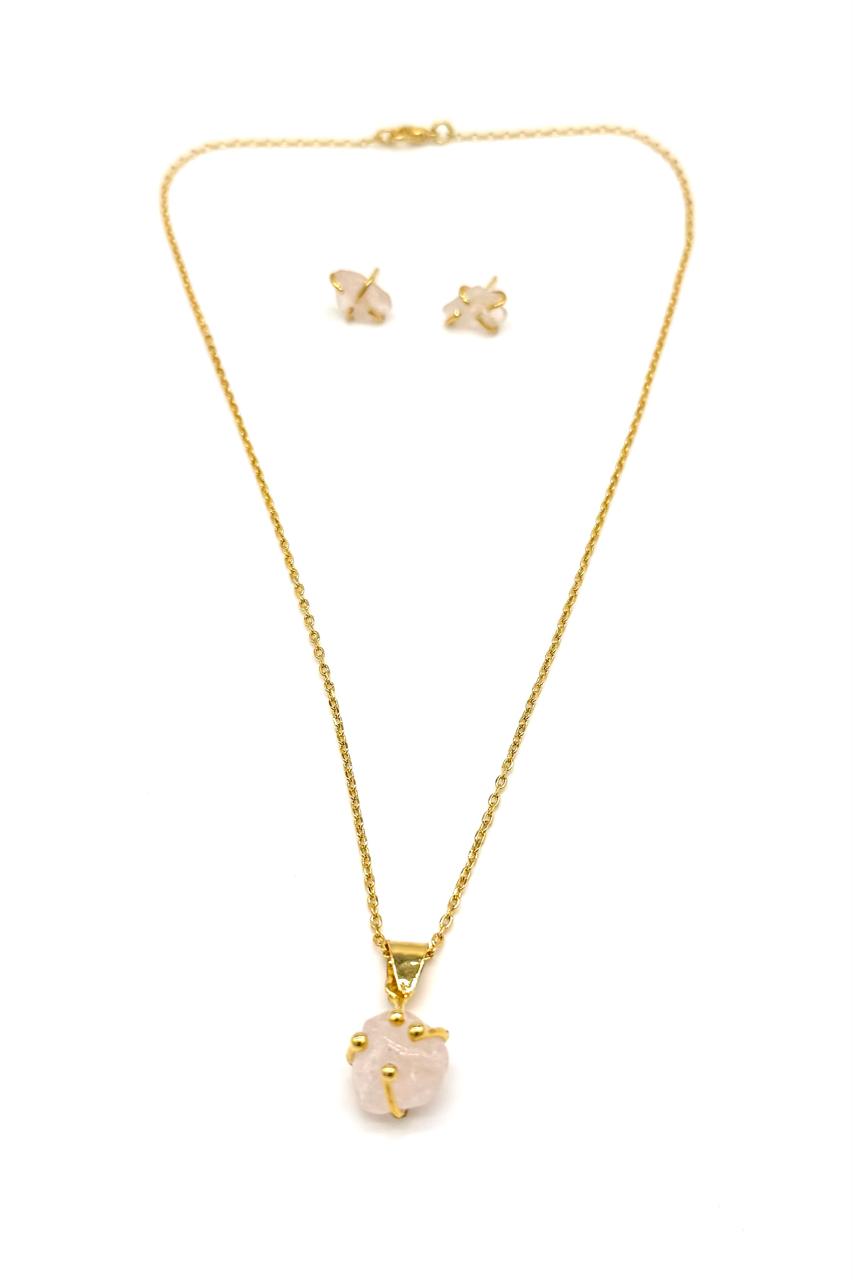 JUEGO CUARZO ROSADO BRONCE ORO