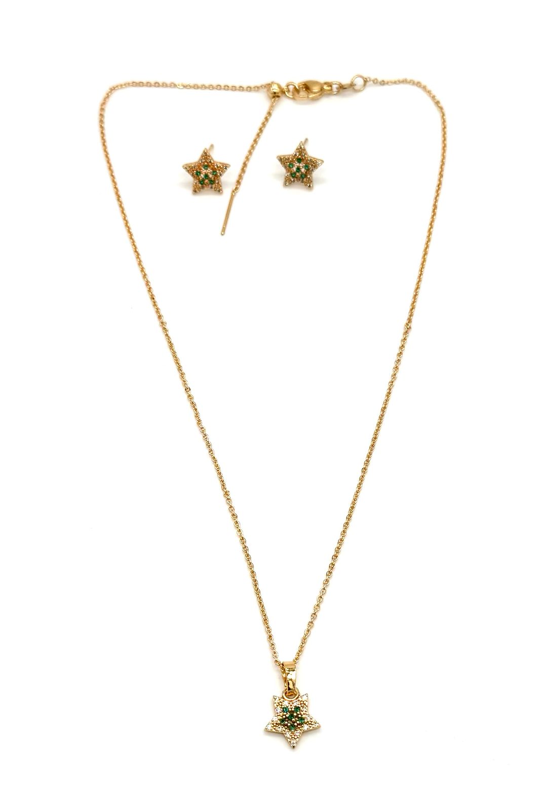 Juego estrella elaborado en rodio, micro zircón. Ajustable.Precio: 110,000 COP