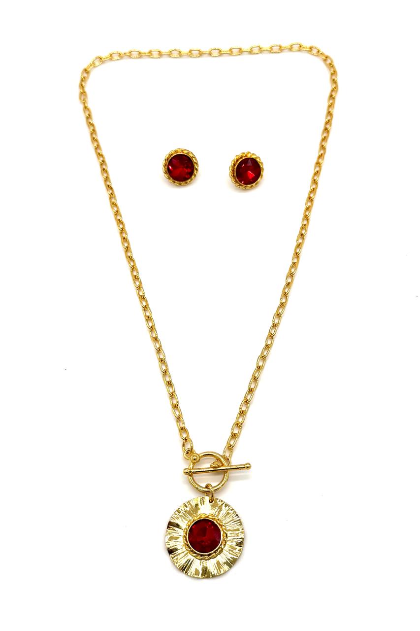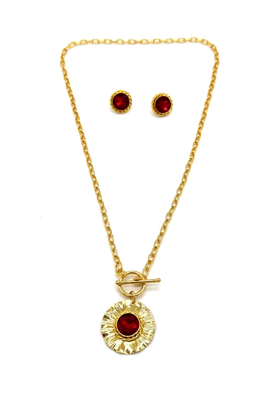 Juego moneda elaborado en bronce con baño en oro de 24 kilates, cristal. Hecho a mano. Joyería contemporánea.Precio: 270,000 COP