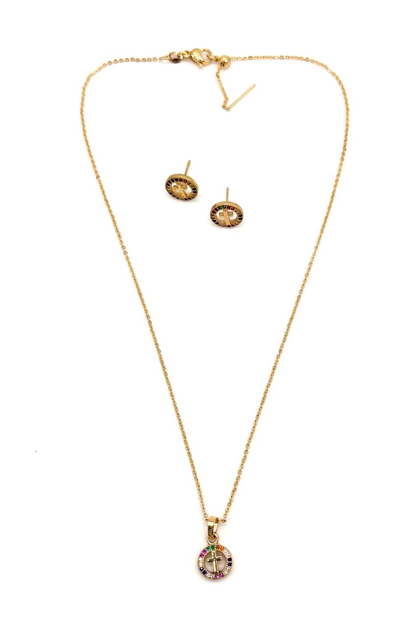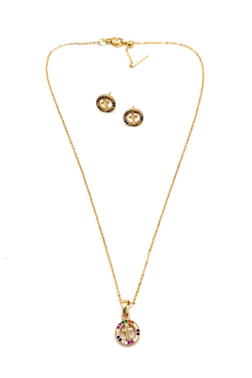 Juego cruz elaborado en rodio y micro zircón. Ajustable.Precio: 110,000 COP