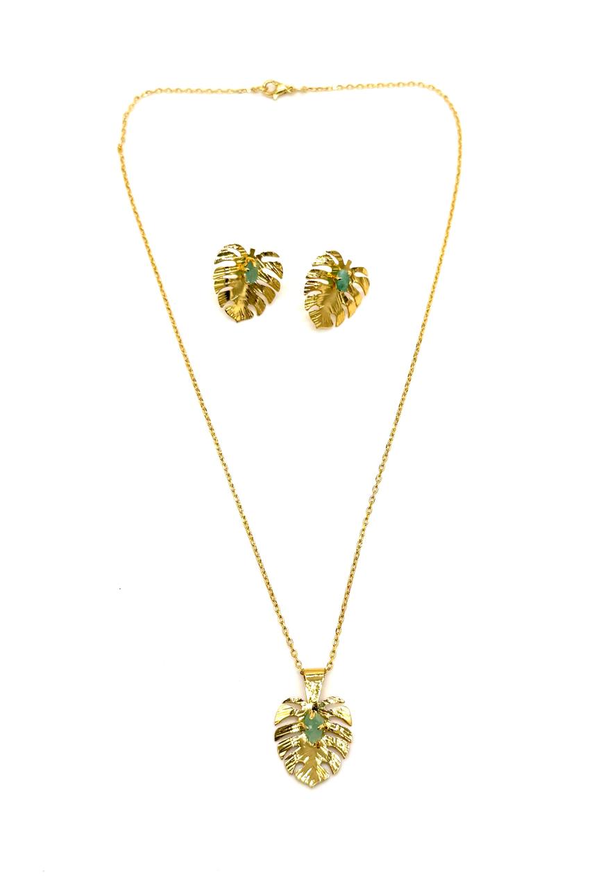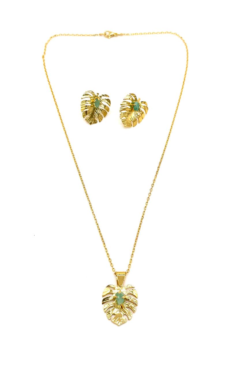 Juego tallito elaborado en bronce con baño en oro de 24 kilates, murralla esmeralda. Hecho a mano. Joyería contemporánea.Precio: 250,000 COP