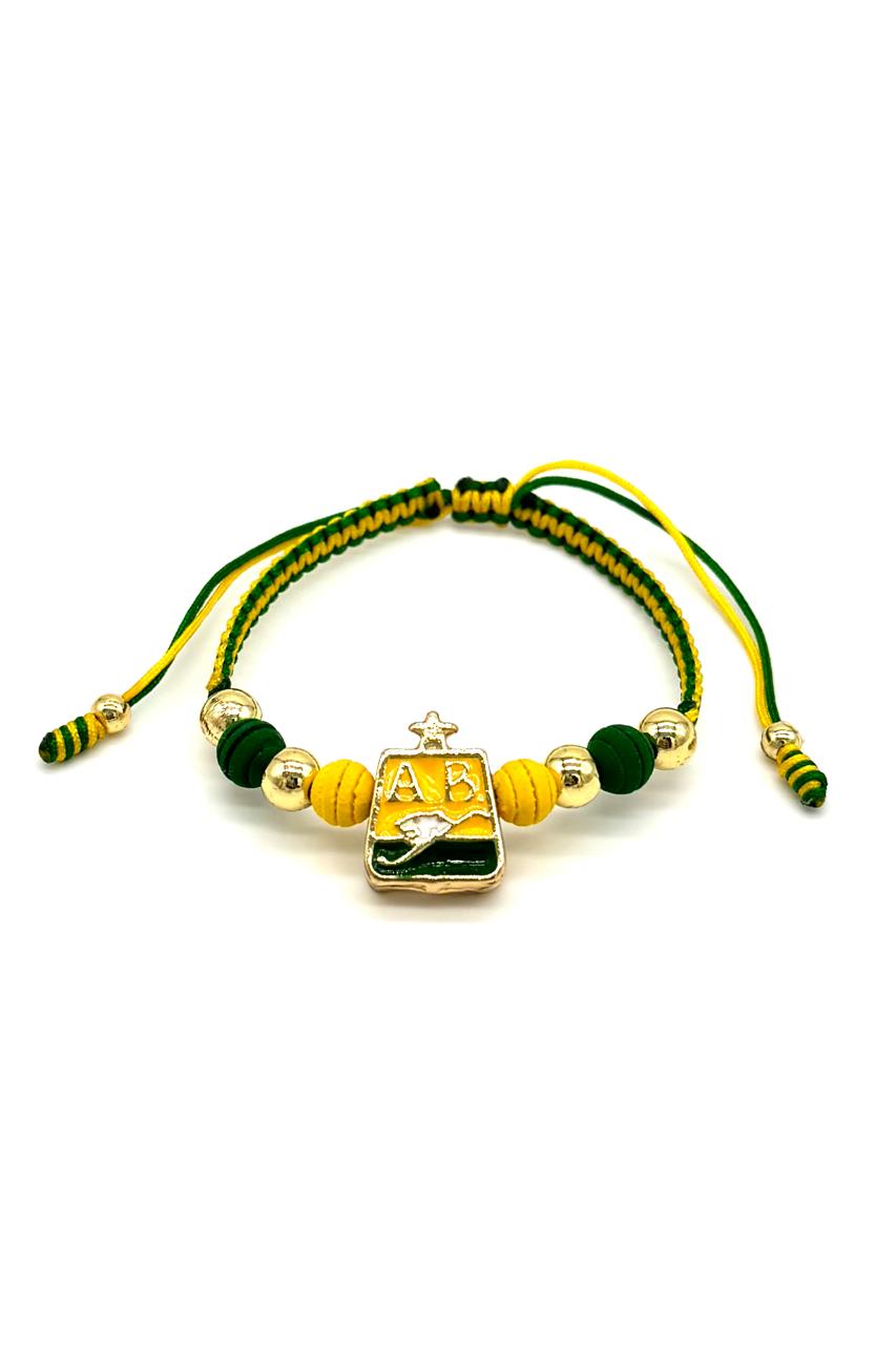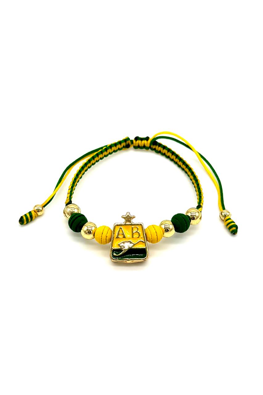 Pulsera dije Atlético Bucaramanga elaborada con neoprenos y balines en rodio. Ajustable. Unisex.Precio: 70,000 COP