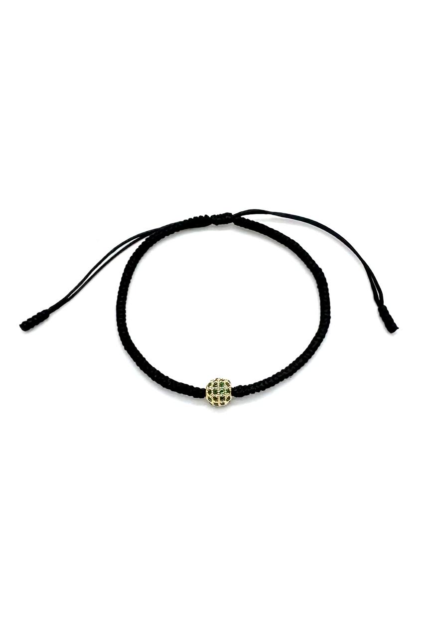 Pulsera bola de fuego elaborada en oro laminado de 18 kilates, zircones verde esmeralda. Ajustable.Precio: 160,000 COP
