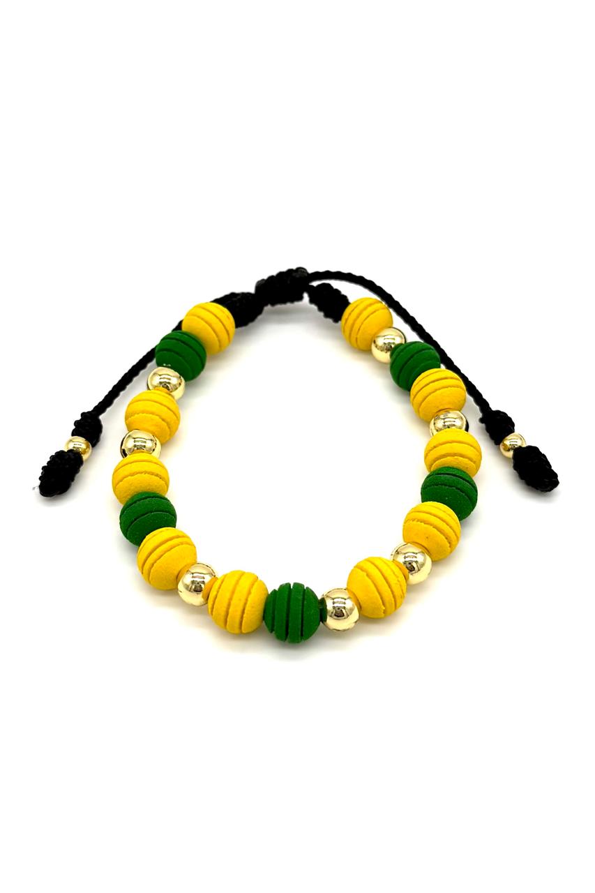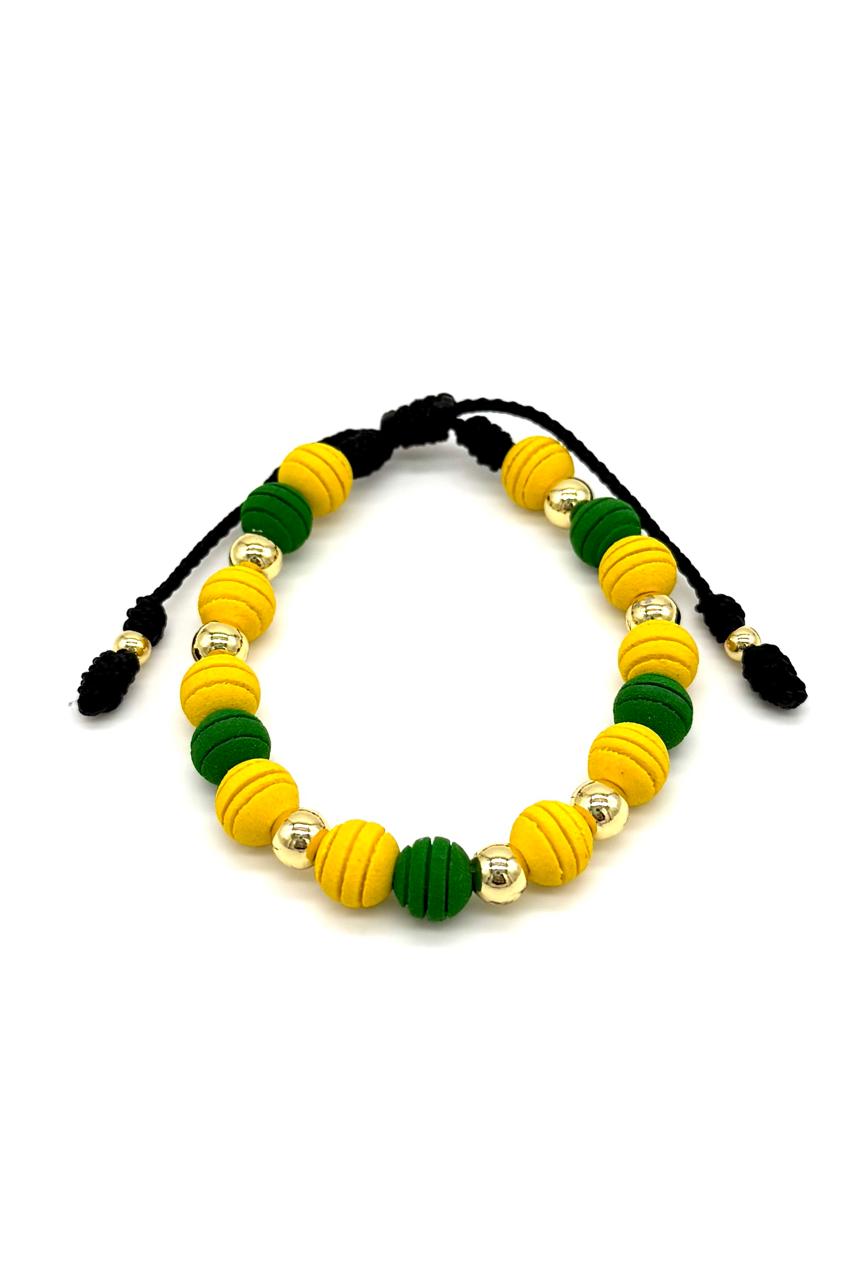 Pulsera Atlético Bucaramanga elaborada en neopreno, balines en rodio. Ajustable. Unisex.Precio: 90,000 COP