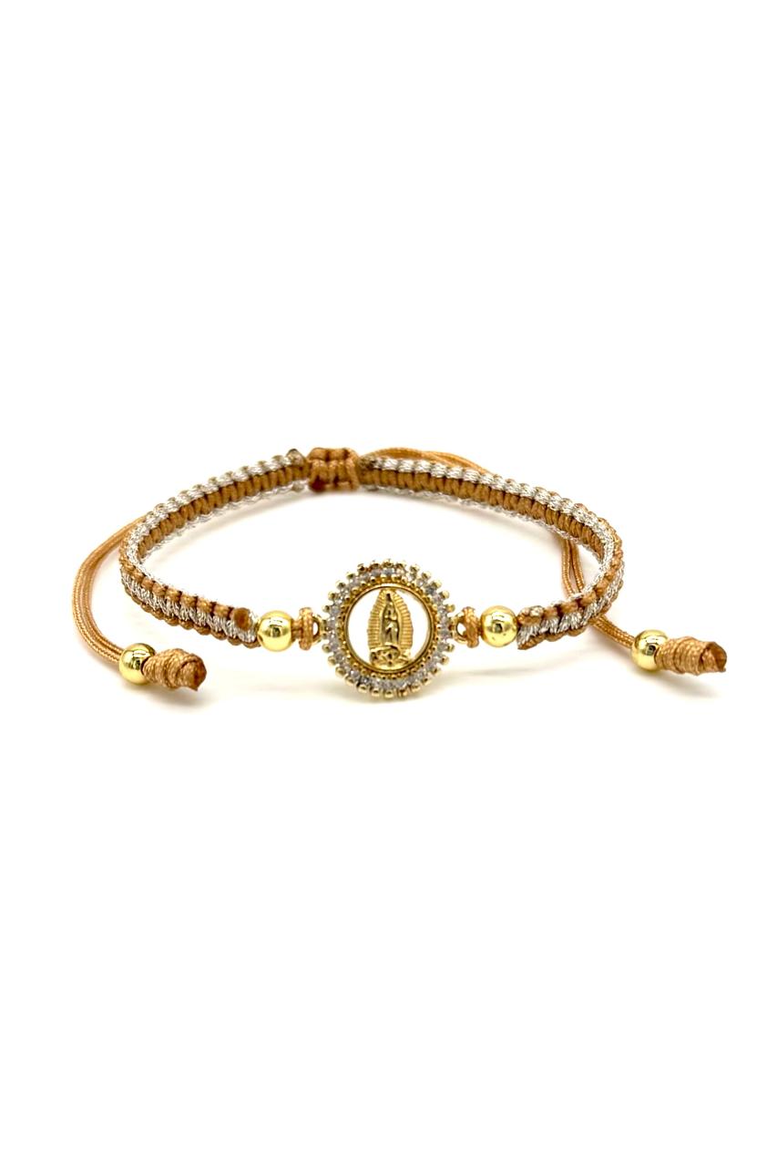 Pulsera Virgen de Guadalupe elaborada en rodio y micro zircón, balines en rodio, hilo Coreano. Ajustable.Precio: 80,000 COP