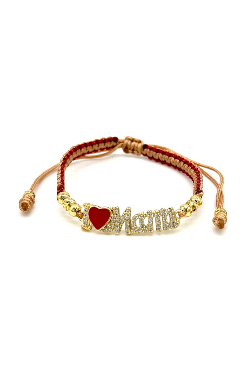Pulsera Mamá corazón elaborada en rodio y micro zircón, porcelanizada, hilo Coreano metalizado. Ajustable.Precio: 110,000 COP