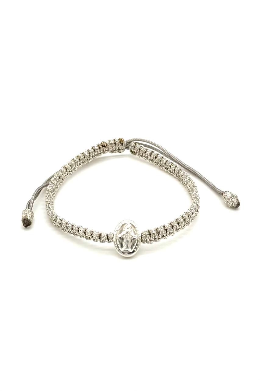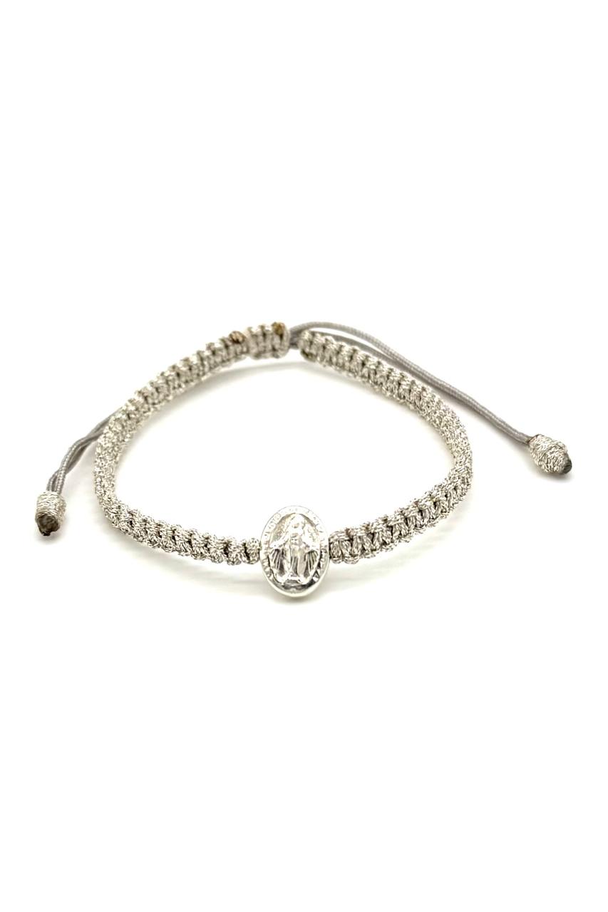 Pulsera medalla de La Virgen Milagrosa elaborada en plata ley 9.25, hilo Coreano metalizado. Ajustable.Precio: 110,000 COP