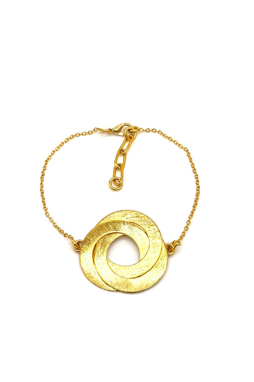 Pulsera nudo elaborada en bronce con baño en oro de 24 kilates. Hecho a mano. Joyería artesanal.Precio: 120,000 COP