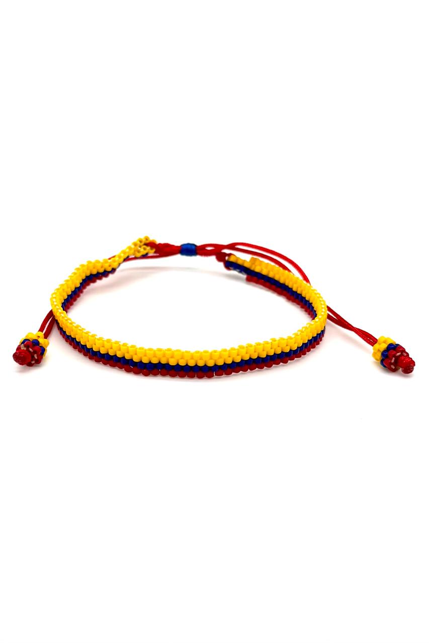 Pulsera Colombia elaborada en tres líneas, tejida con técnica de miyuki. Ajustable.Precio: 95,000 COP