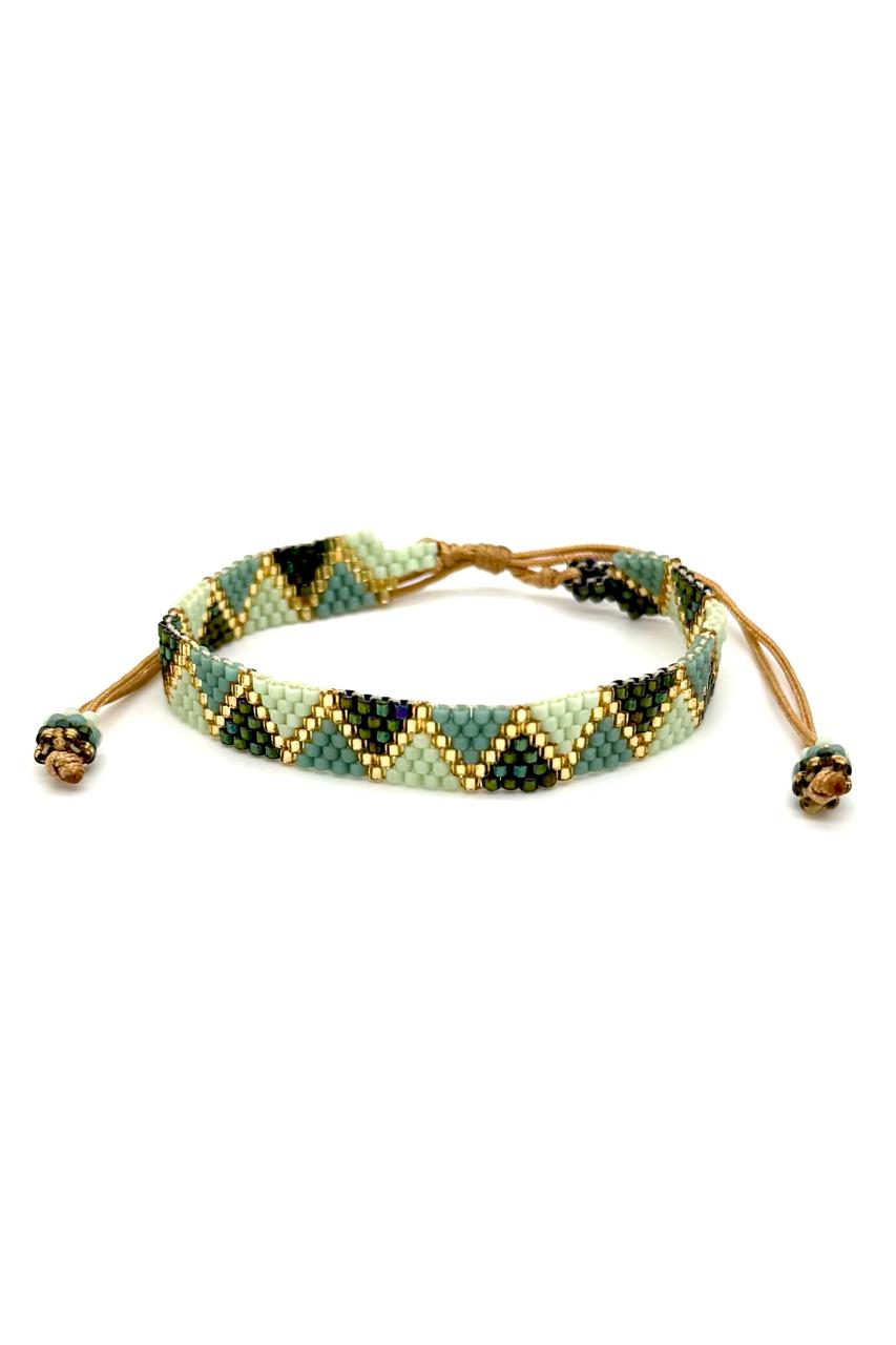 Pulsera triángulos elaborada en miyuki, hilo Coreano. Ajustable. Hecho a mano.Precio: 120,000 COP