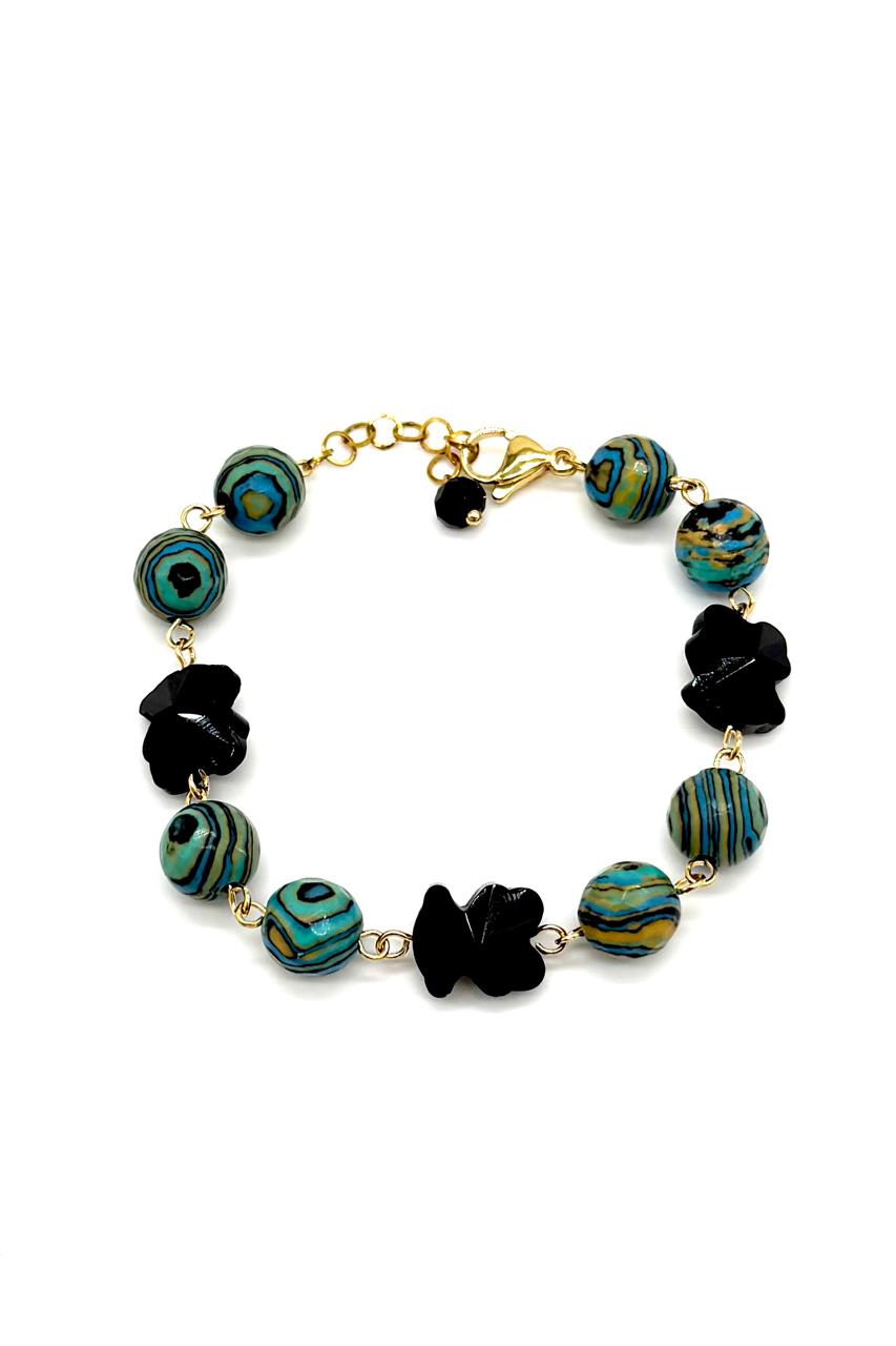 Pulsera elaborada con oso en cristal Checo, turquesas inyectadas, hilo goldfield micra oro.Precio: 150,000 COP