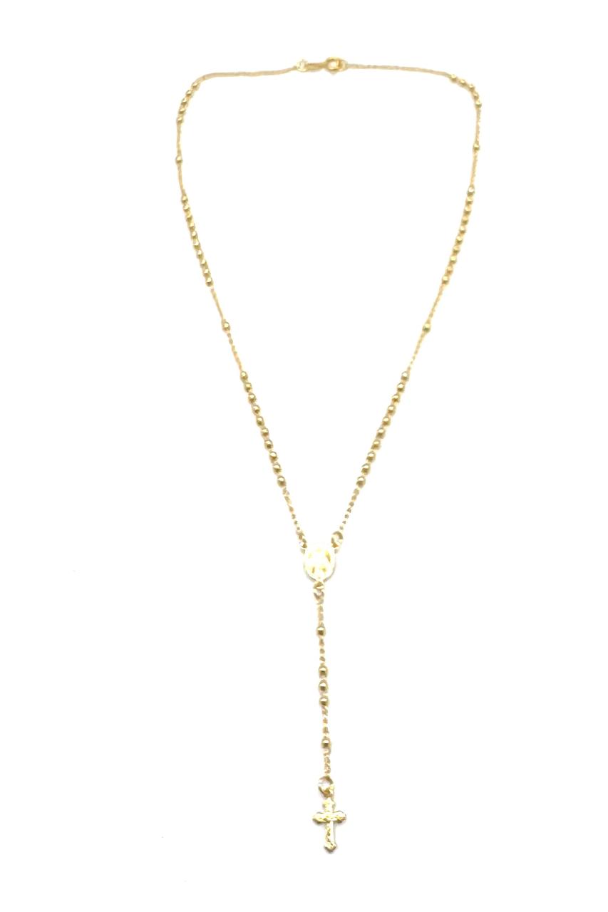 Rosario elaborado en oro laminado de 18 kilates, crucero con La Virgen Milagrosa.Precio: 550,000 COP