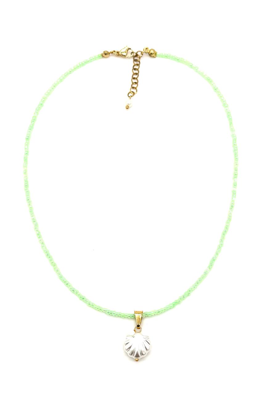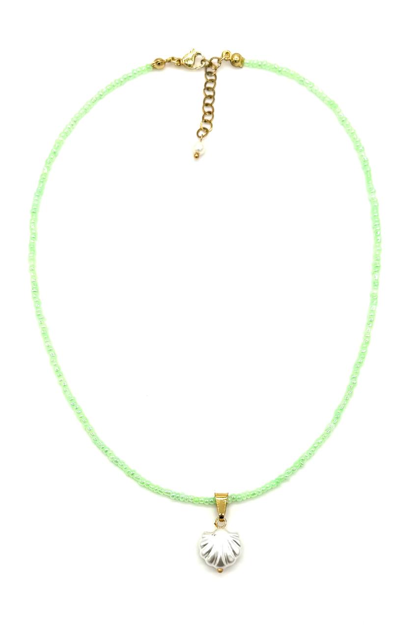 Shoker concha elaborado con mostacillas Chinas, concha sintética, broche en rodio.Precio: 60,000 COP
