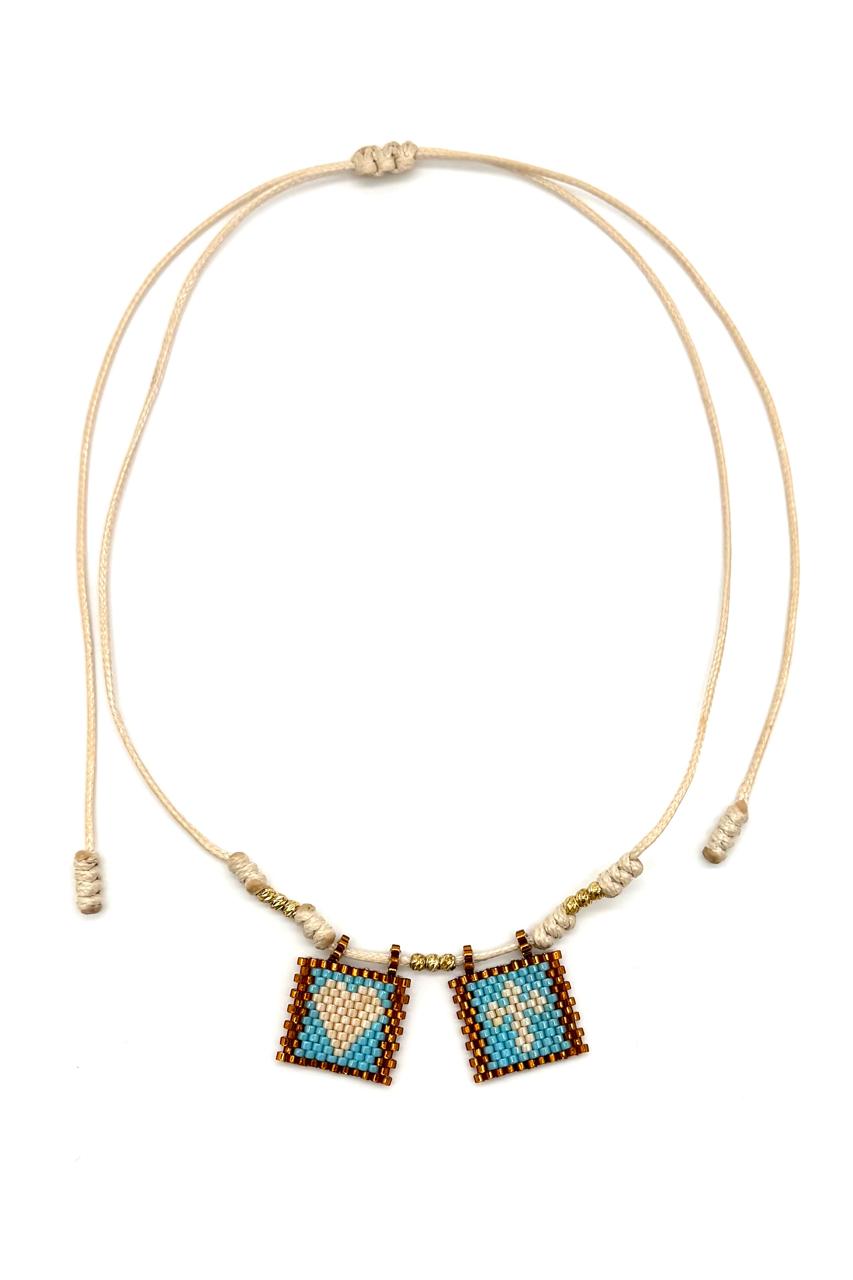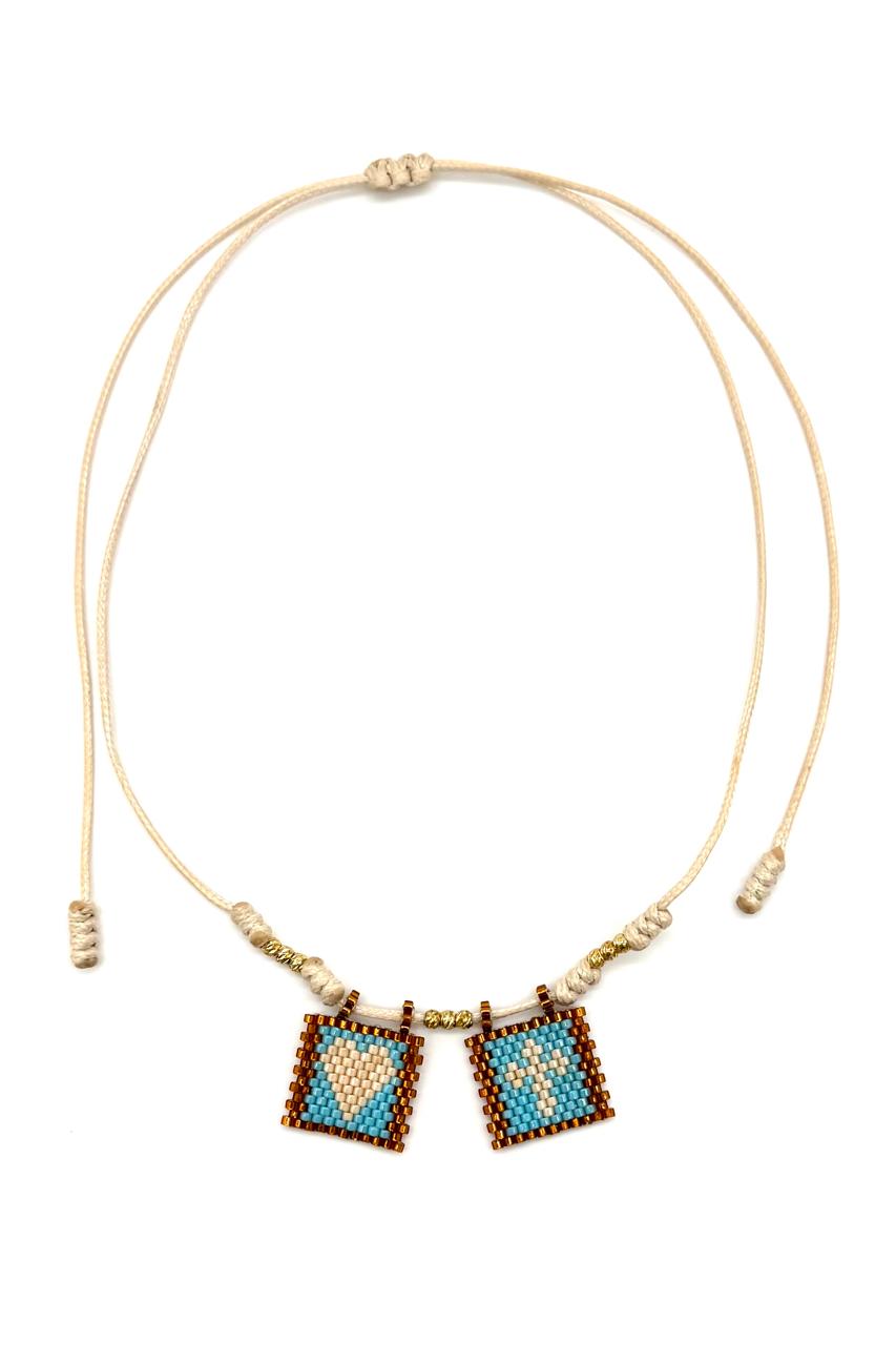 Shoker corazón cruz elaborado con miyuki, cuero víbora, balines diamantados. Ajustable.Precio: 120,000 COP