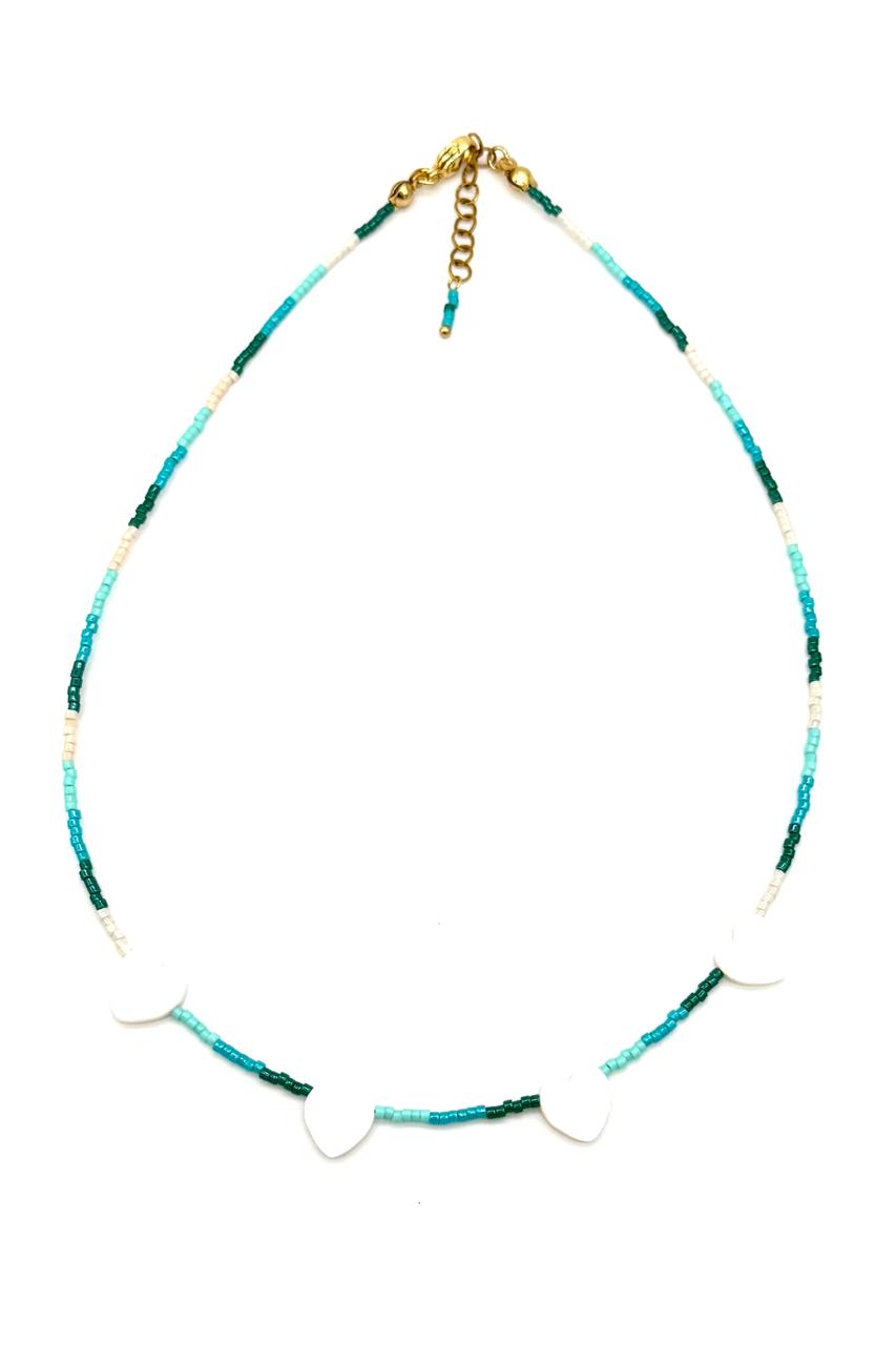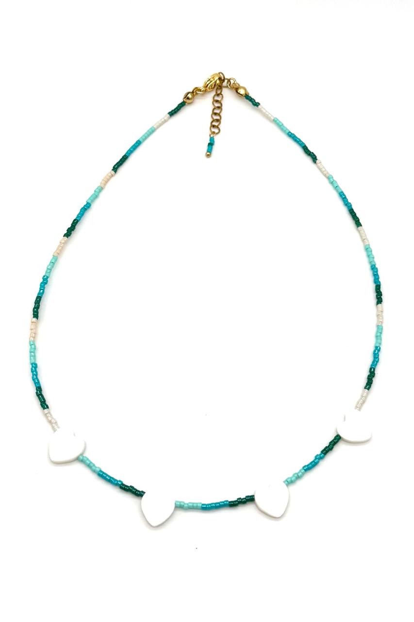 Shoker elaborado con corazones en nácar, miyuki y broche en rodio y acero.Precio: 110,000 COP